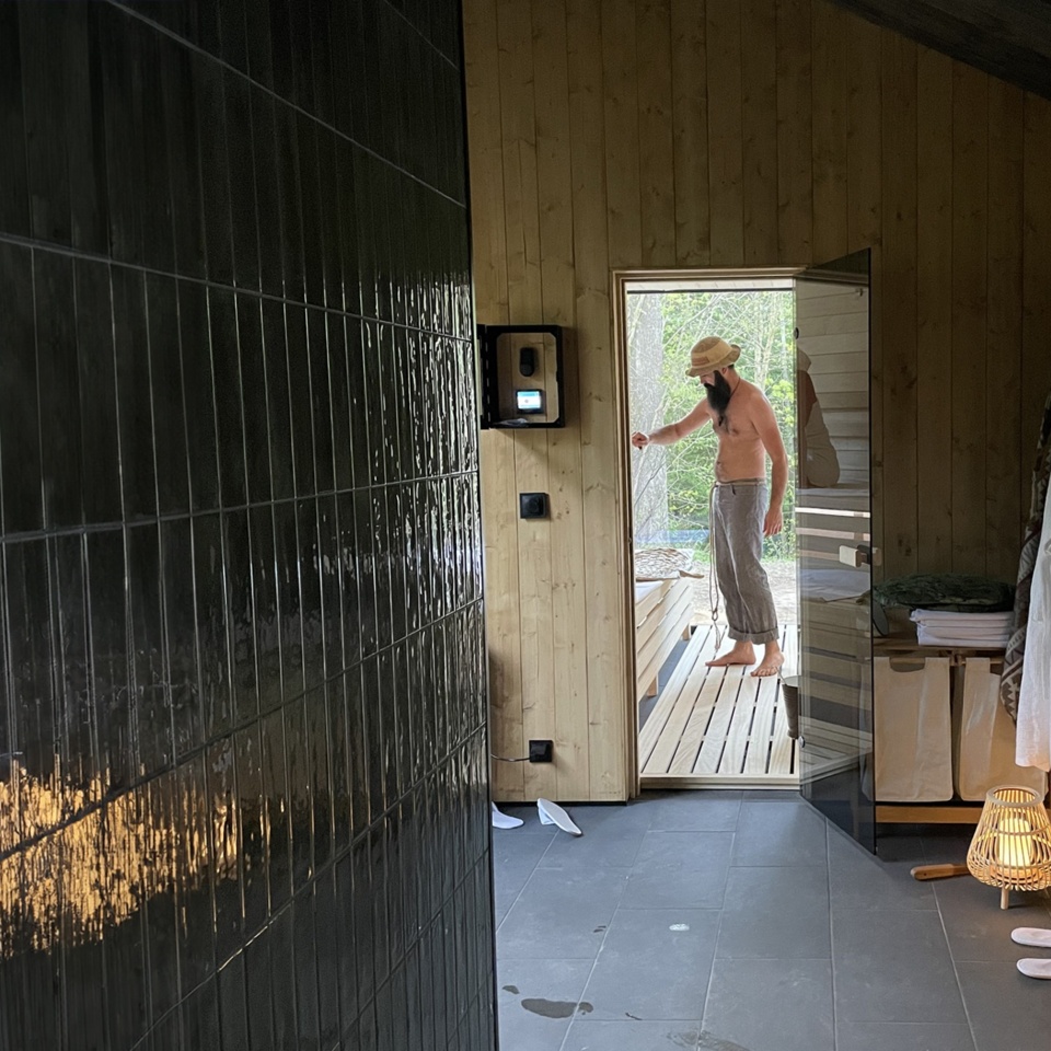 Before relaxing in the sauna